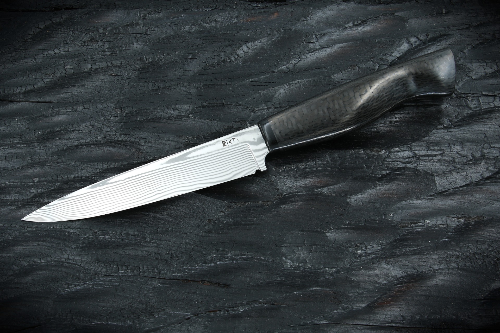 Damasteel:n #drakkar kuvio. Ruostumaton pulveriteräs. Leikkaava osuus 130mm.
